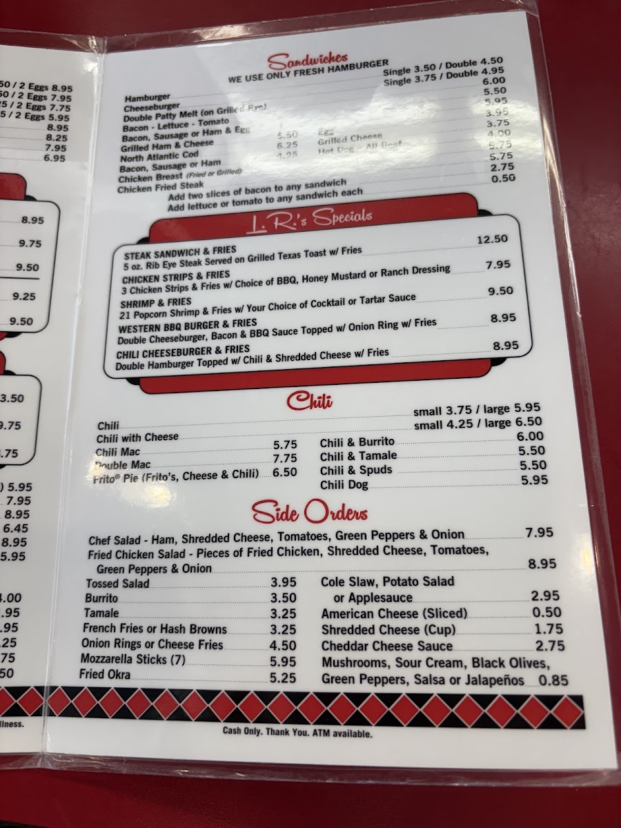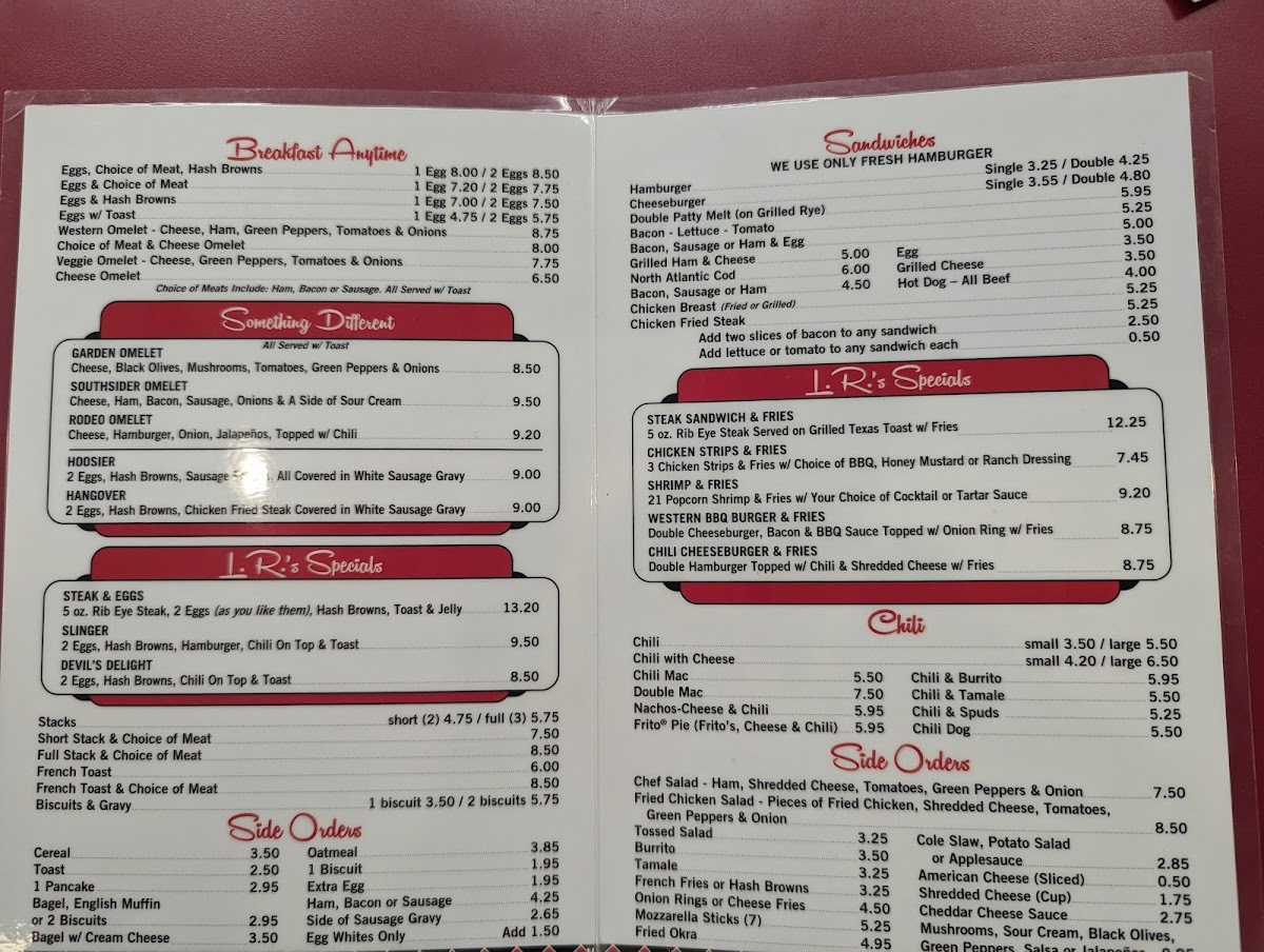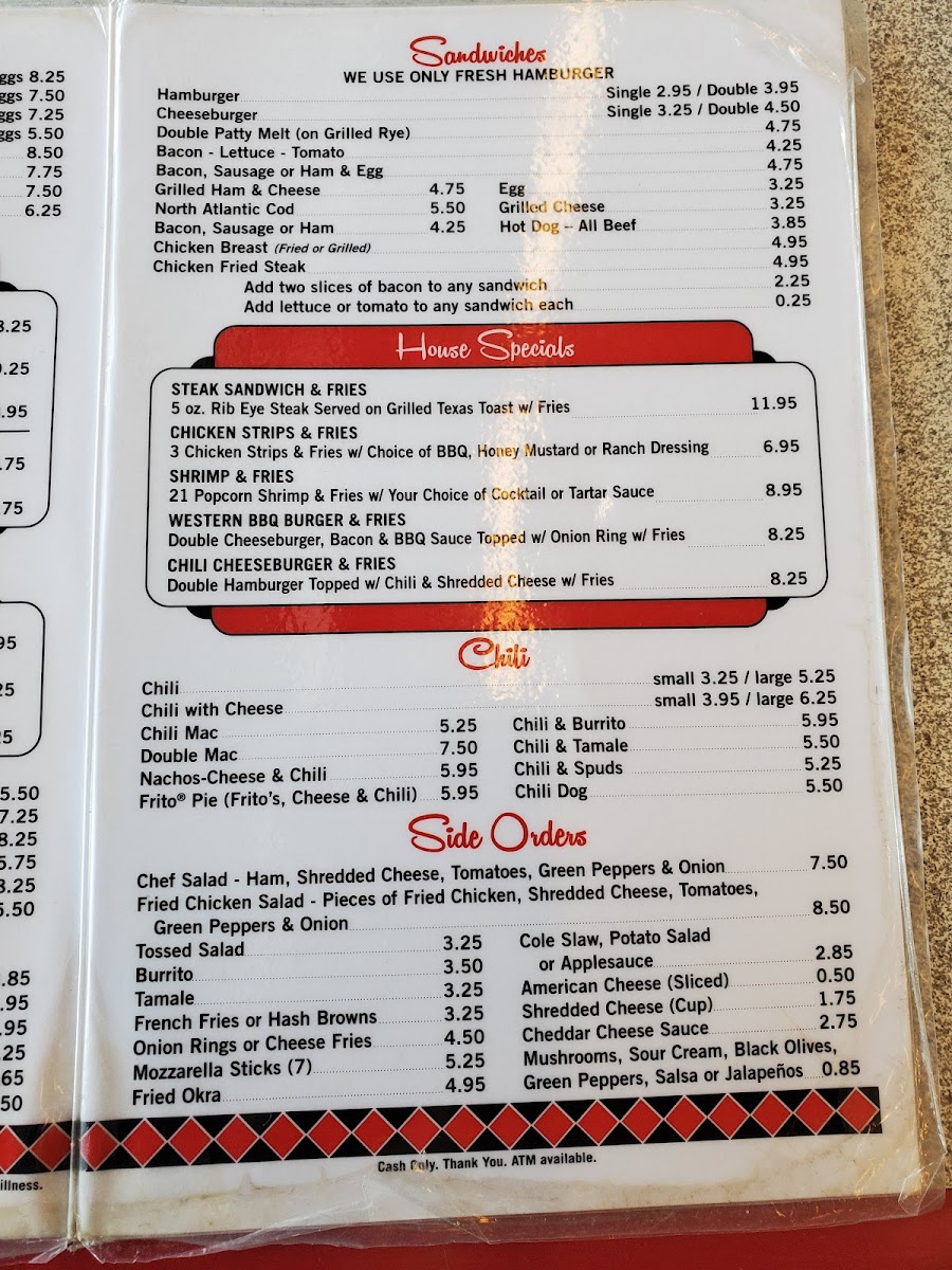 Overall, the menu is suitable for breakfast, brunch, or casual lunch, offering quick and straightforward selections with a focus on traditional diner cuisine. Visitors can expect a range of egg dishes, sandwiches, and sides typical of a breakfast restaurant, structured to accommodate both smaller orders and full, hearty meals.